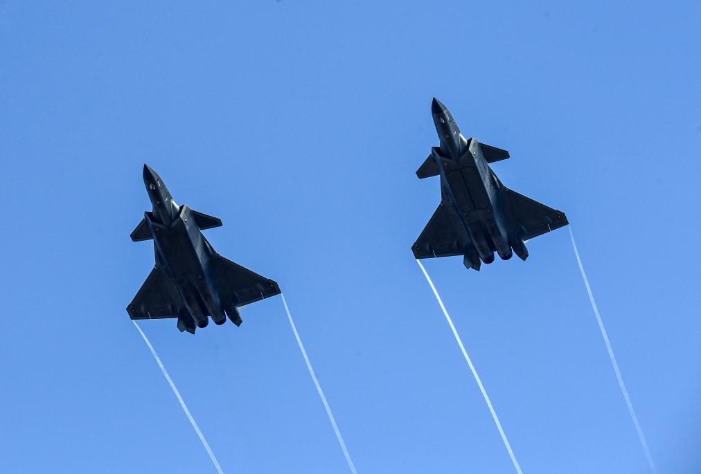11月12日,空军歼-20战机在珠海航展上进行飞行展示。新华社记者 张永进 摄