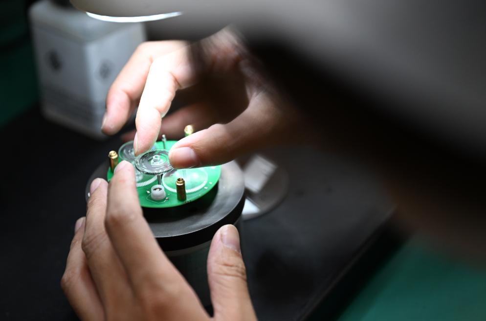 天津宜科自动化股份有限公司编码器生产车间内,员工在工作。新华社记者 赵子硕 摄