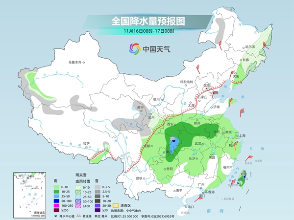未来三天中东部雨雪仍将在线,今明两天西北地区东部仍有雨转雪或降雪,后天华北西部一带降雪也会增多。此外,台风“天兔”和“万宜”将相继影响我国,华南地区及南部海域需防范强风雨。