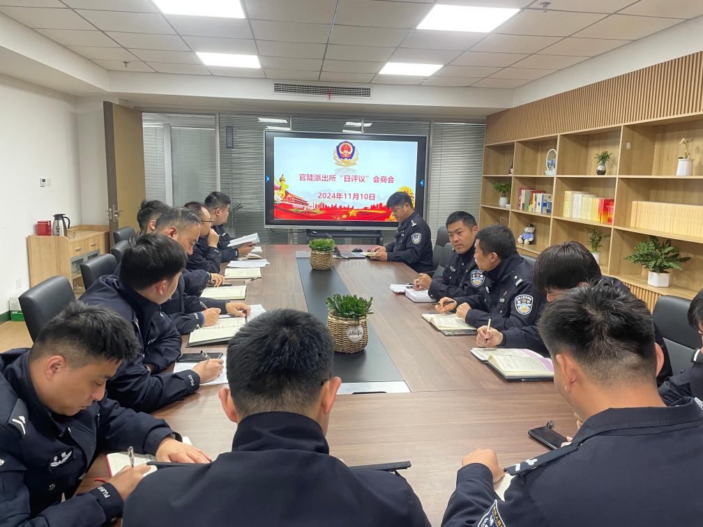 2024年11月10日,官陡派出所民警举行“日评议”早会。(毕仁芳 摄)