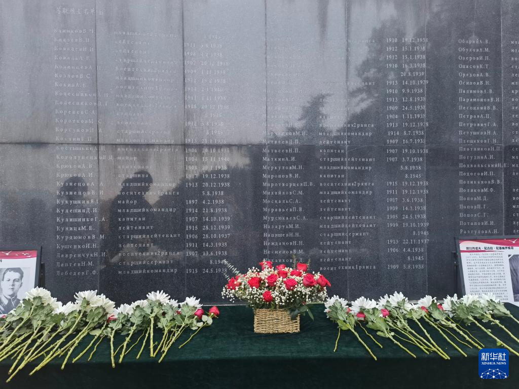 在南京抗日航空烈士纪念馆镌刻有苏联籍抗日航空英烈名录的纪念碑前,摆放着人们献上的鲜花(11月22日摄)。新华社记者 邱冰清 摄