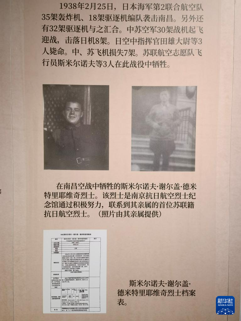 南京抗日航空烈士纪念馆新征集到的苏联援华航空队员斯米尔诺夫·谢尔盖·德米特里耶维奇的照片(11月22日摄)。新华社记者 邱冰清 摄
