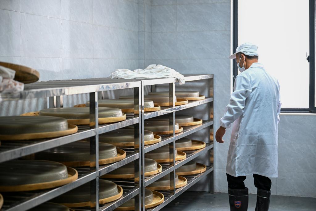 11月20日,在浙江余姚鹿亭乡“鹿亭农合”共富工坊,村民在查看蒸熟的番薯面饼。