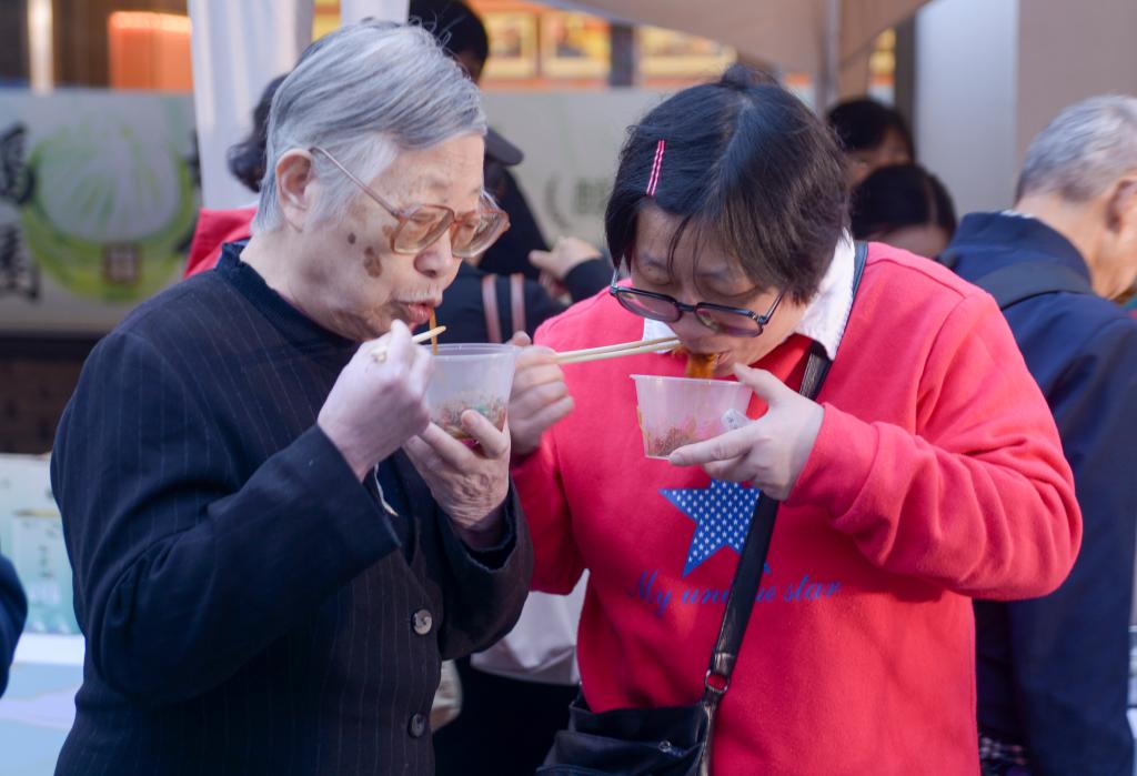11月22日,在浙江宁波举行的鹿亭粉丝推介活动上,市民品尝鹿亭粉丝。