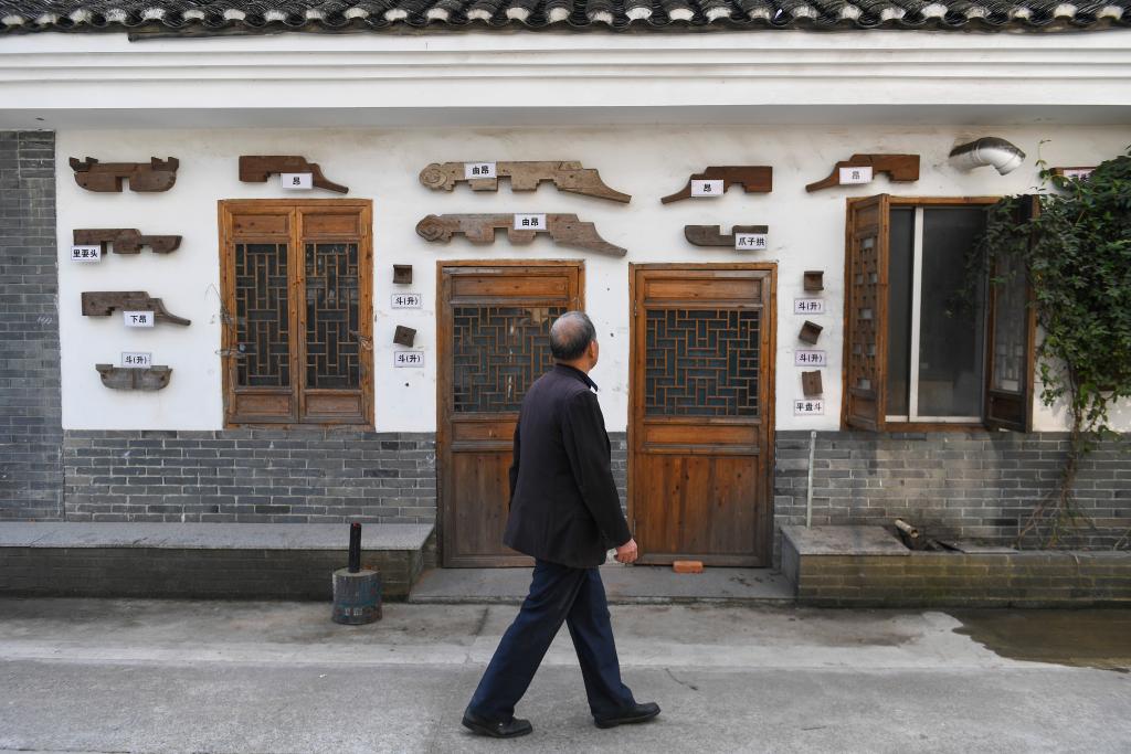 11月22日,黄大树(右)走进汇溪古建营造技艺博物馆。