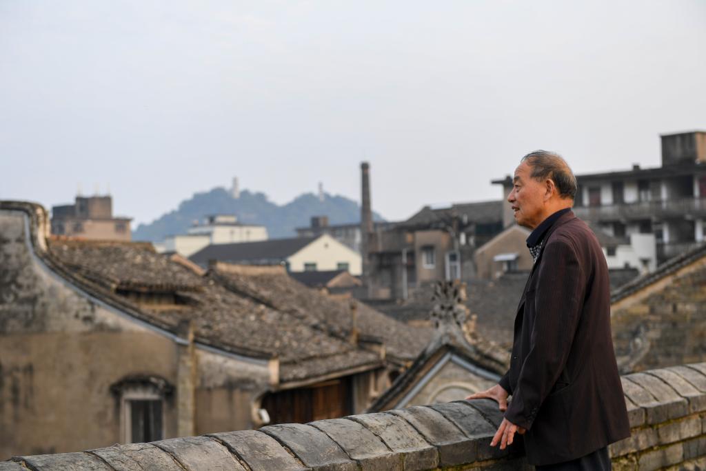 11月22日,黄大树站在浙江临海台州府城墙上远眺。