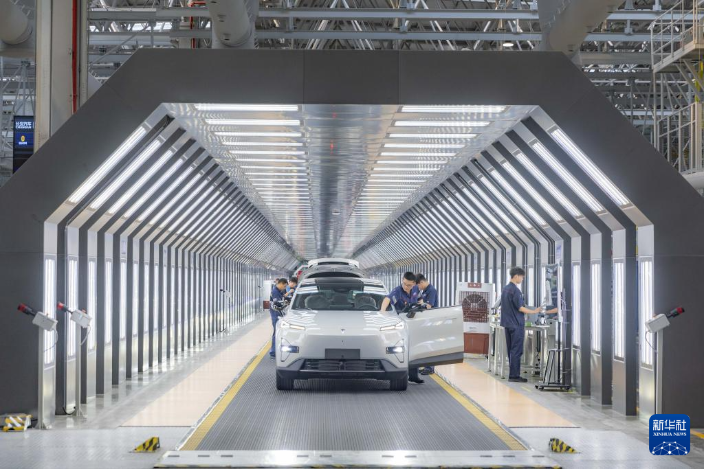 在位于重庆市渝北区的长安汽车渝北新工厂总装车间,工作人员对新能源汽车进行下线前的检测(2024年9月19日摄)。新华社记者 黄伟 摄