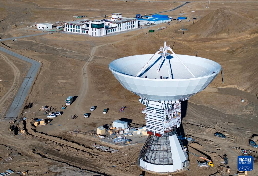 建设中的西藏日喀则40米射电望远镜(2024年11月7日摄,无人机照片。)。在日喀则,40米口径射电望远镜已于2024年10月完成天线系统主反射体的吊装,预计将于年底完成基本建设,2025年年初具备观测能力。建成后,它将和上海、吉林、新疆、云南等地的射电望远镜站点,以及上海VLBI数据处理中心共同构成“六站一中心”的中国甚长基线干涉测量网。新华社记者 姜帆 摄