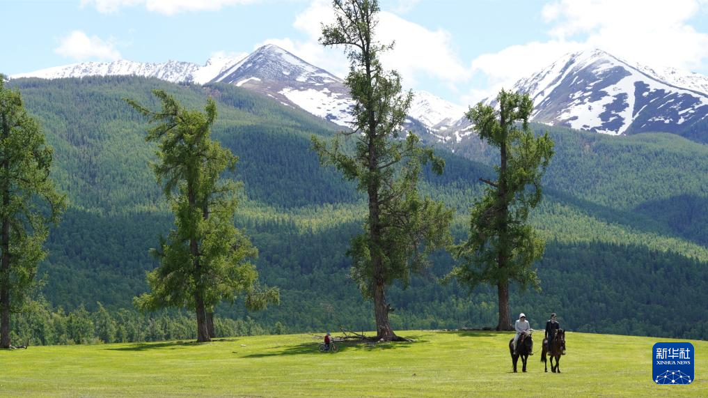 在新疆阿勒泰地区哈巴河县,游客在骑马游玩(2024年6月6日摄)。新华社记者 阿曼 摄