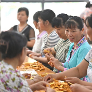 在融水苗族自治县苗家小镇易地扶贫安置点粤桂协作帮扶车间,群众在制作手工艺品(6月20日摄)。近年来,广东省廉江市和广西融水苗族自治县在开展粤桂东西部协作工作中,持续推进产业发展,做大做强竹木加工、林下经济、文旅融合等特色产业,助推全县产业高质量发展,促进脱贫人口稳岗增收。新华社记者黄孝邦摄