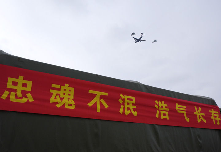 仪式结束后,志愿军烈士遗骸棺椁在48辆警用摩托组成的骑警车队护卫下,由6辆军用运输车送往沈阳抗美援朝烈士陵园。