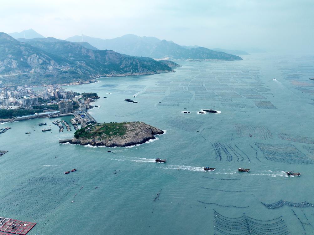 12月4日,渔船在福州市连江县奇达村渔排养殖区行驶(无人机照片)。
