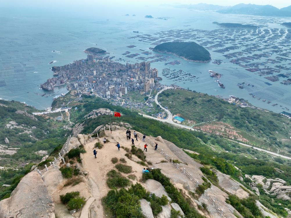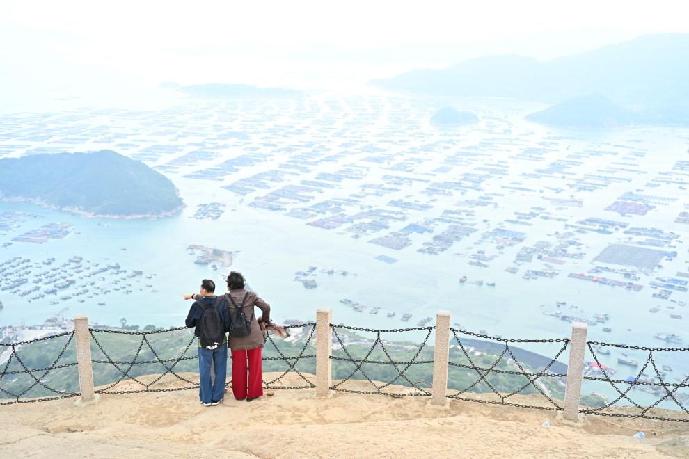 12月4日,游客在福州市连江县奇达村旗冠顶游览(无人机照片)。