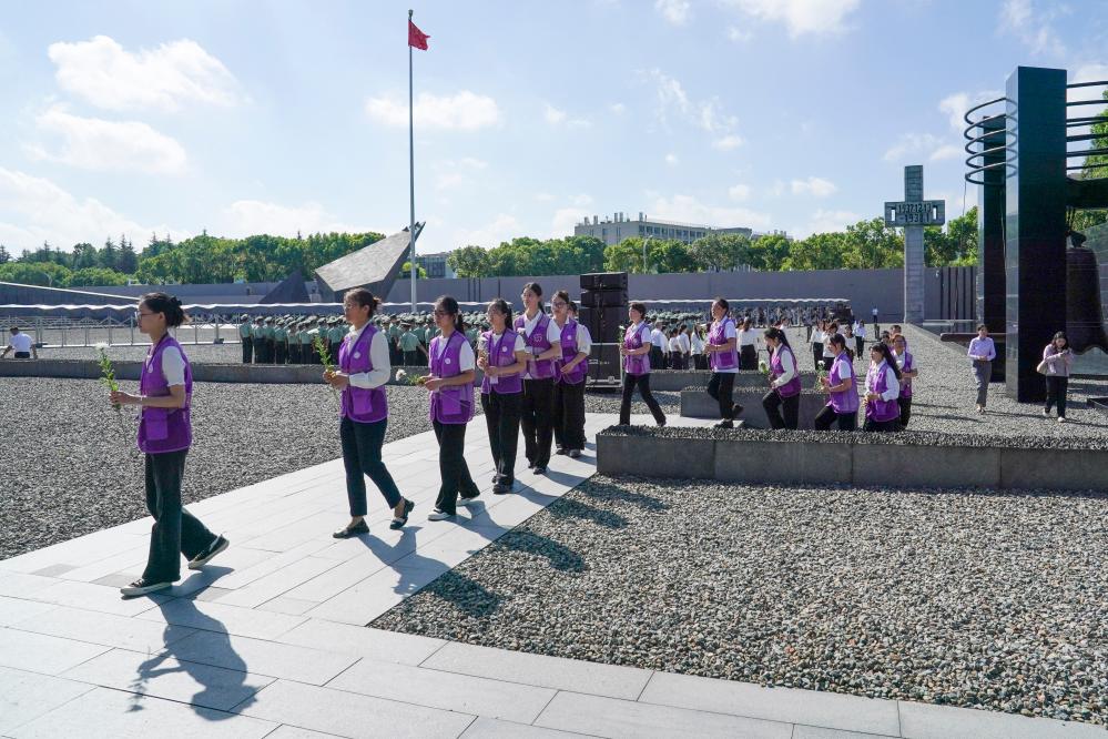 2024年9月18日,在侵华日军南京大屠杀遇难同胞纪念馆,社会各界代表排队献花。 新华社记者 李博 摄