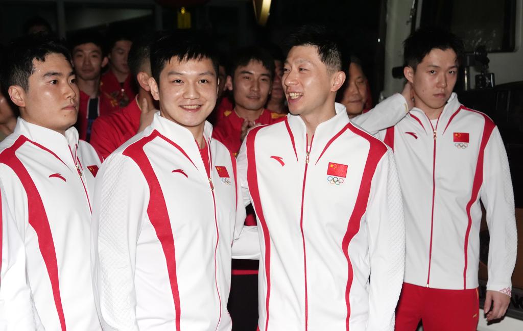 7月14日深夜,中国乒乓球队从北京启程,出征巴黎奥运会。新华社发(边玉翔摄)
