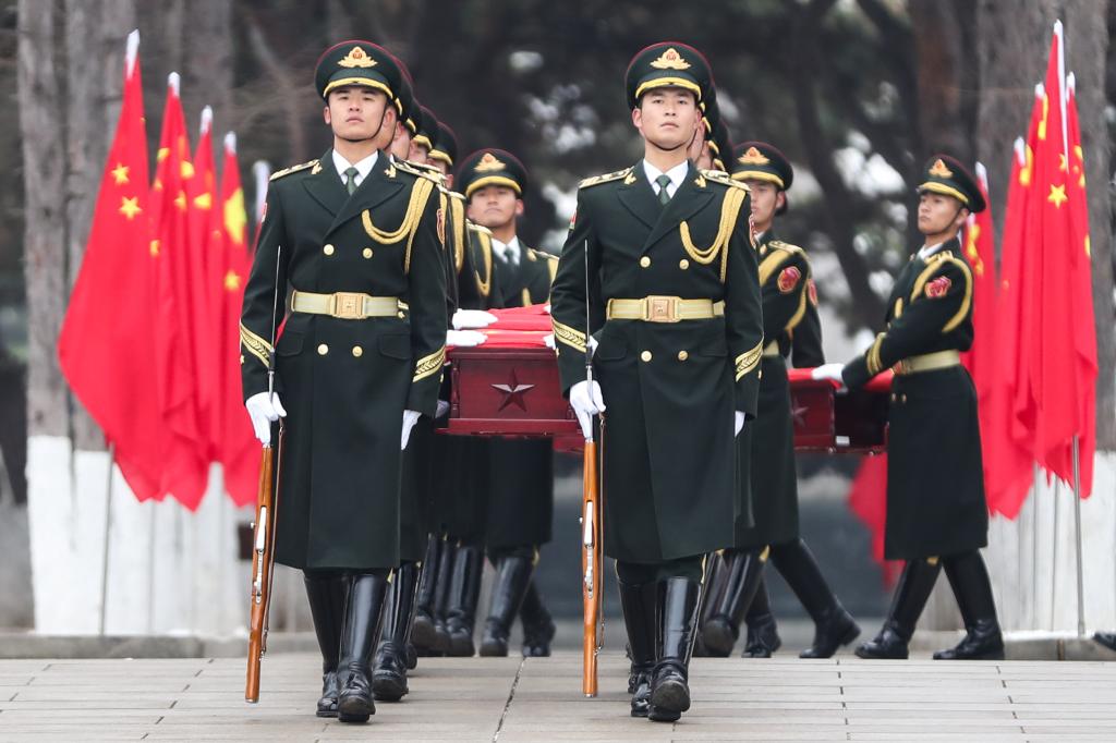 11月29日上午,第十一批在韩中国人民志愿军烈士遗骸安葬仪式在沈阳抗美援朝烈士陵园举行。43位为保家卫国英勇牺牲在异国他乡的志愿军烈士遗骸在这里安葬。新华社发(韩启扬 摄)