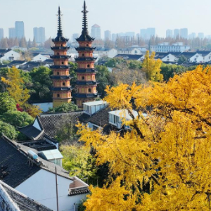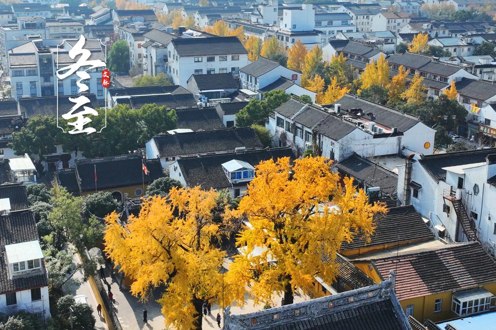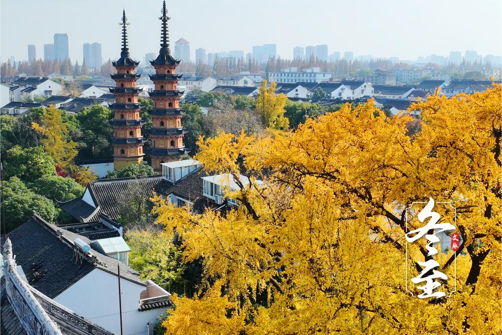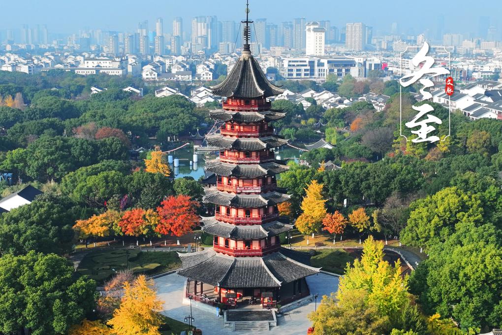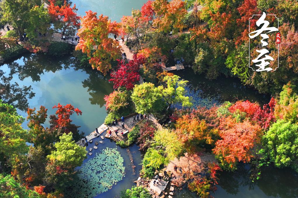 江苏苏州是国家历史文化名城,有数千年历史。冬至时节,寒风没有带去萧瑟,反而让苏州变得更加艳丽。五彩缤纷的树叶映衬着古朴的建筑,装扮出一个别样的江南水乡。
