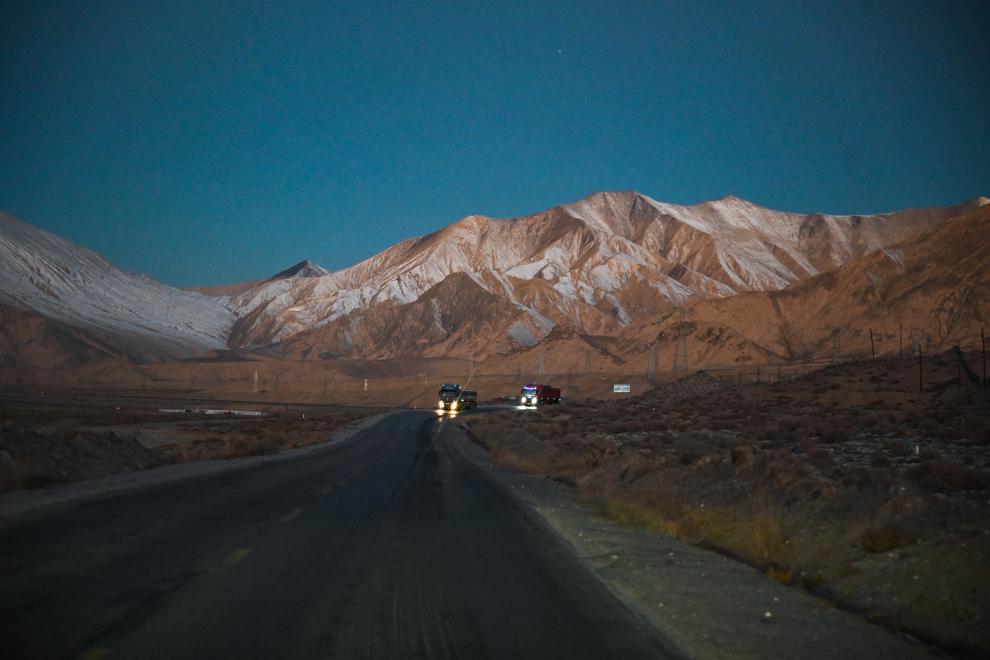 12月1日,汽车行驶在位于昆仑山腹地的青藏公路上。新华社记者 张龙 摄