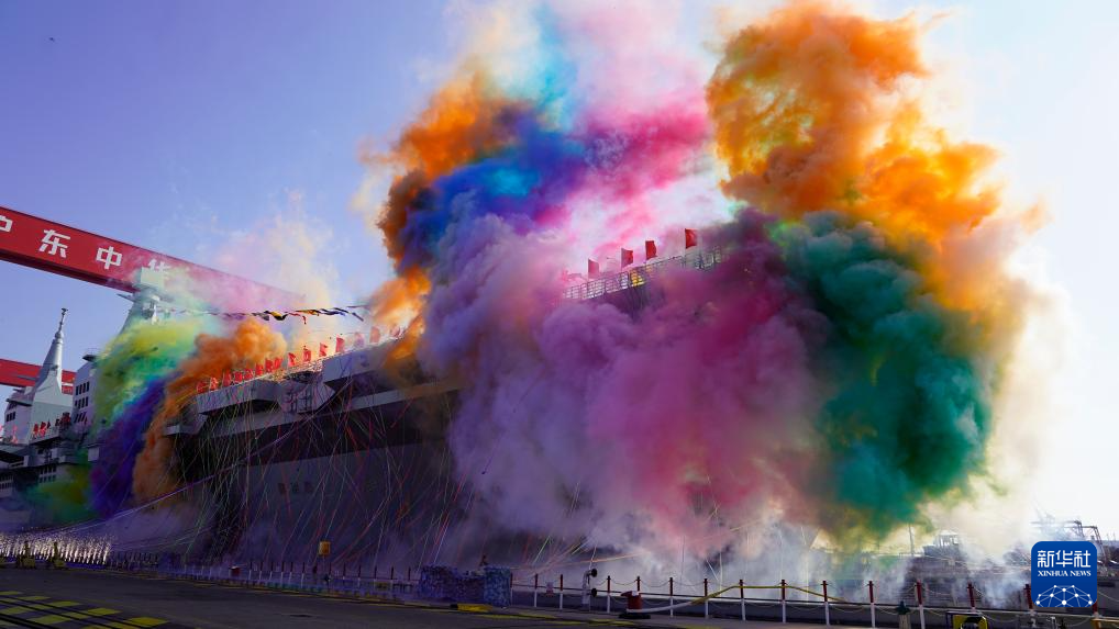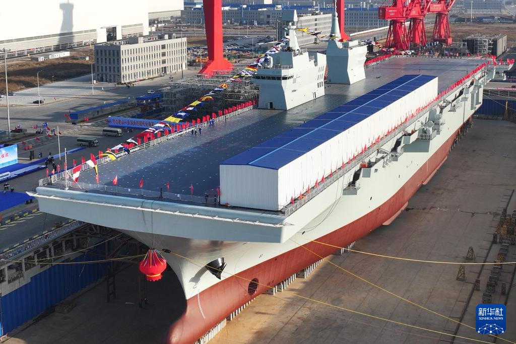 12月27日上午,我国自主研制建造的076两栖攻击舰首舰下水命名仪式在上海举行。新华社发(蒲海洋 摄)