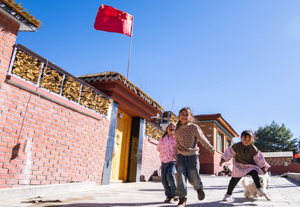 12月15日,在西藏日喀则吉隆县吉隆镇,达曼新村的孩子们在玩耍。