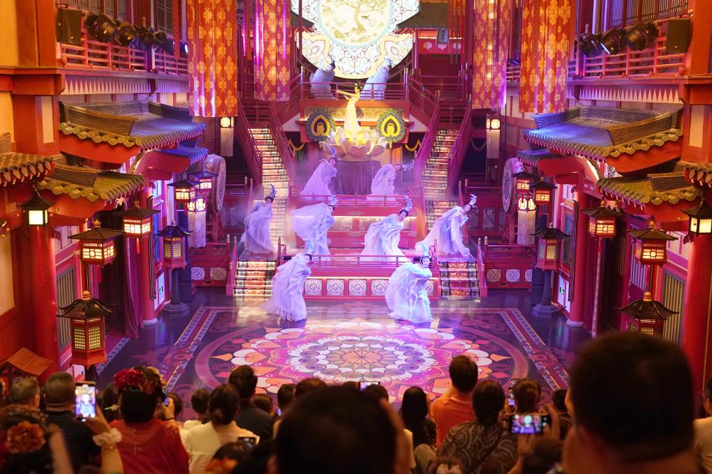 游客在西安长安十二时辰景区观看表演《霓裳羽衣舞》(5月19日摄)。