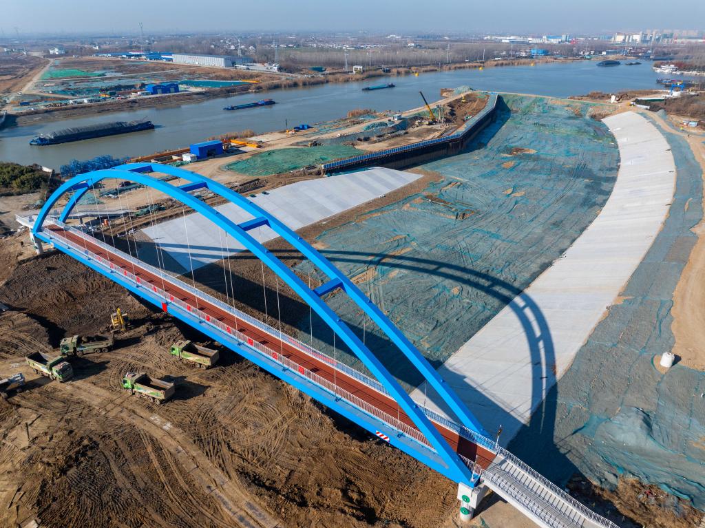 12月29日拍摄的淮河入海水道二期工程淮安枢纽项目施工现场(无人机照片)。