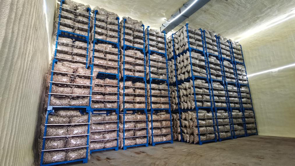 位于白桥镇的济南恒鑫源农副产品有限公司恒温库内存储的大蒜。(受访者供图)