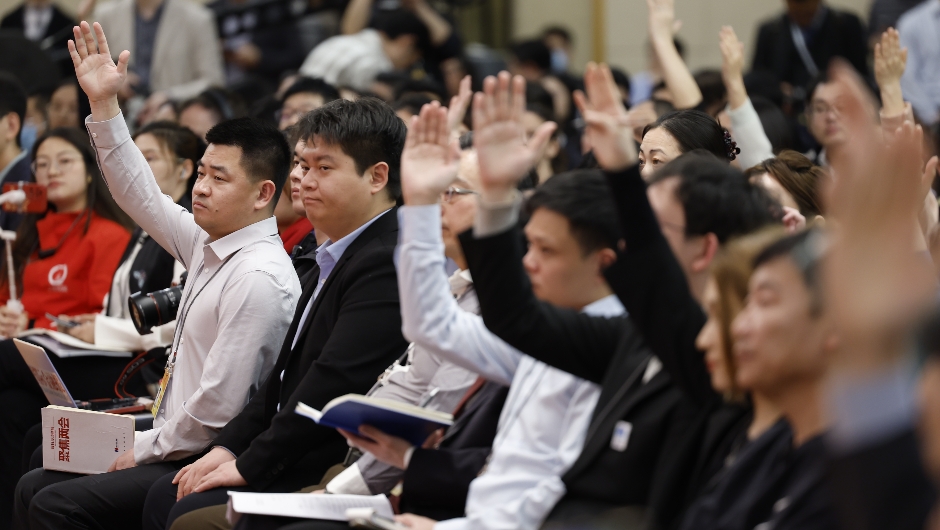 十四届全国人大二次会议于2024年3月6日(星期三)下午3时,在梅地亚中心新闻发布厅举行记者会,邀请国家发展和改革委员会主任郑栅洁、财政部部长蓝佛安、商务部部长王文涛、中国人民银行行长潘功胜、中国证券监督管理委员会主席吴清就发展改革、财政预算、商务、金融证券等相关问题回答中外记者提问。