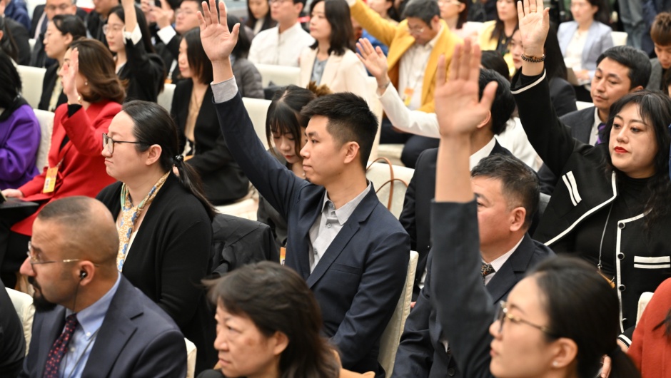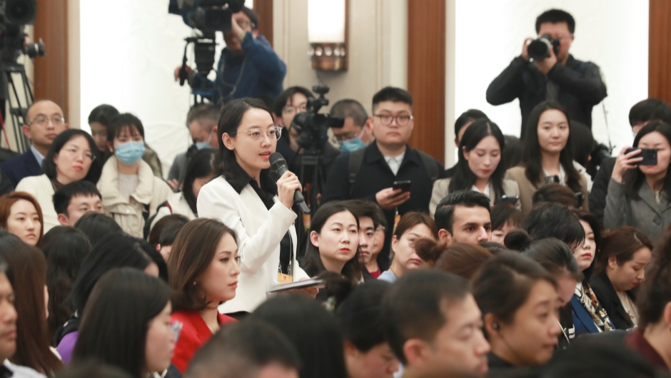 记者举手提问