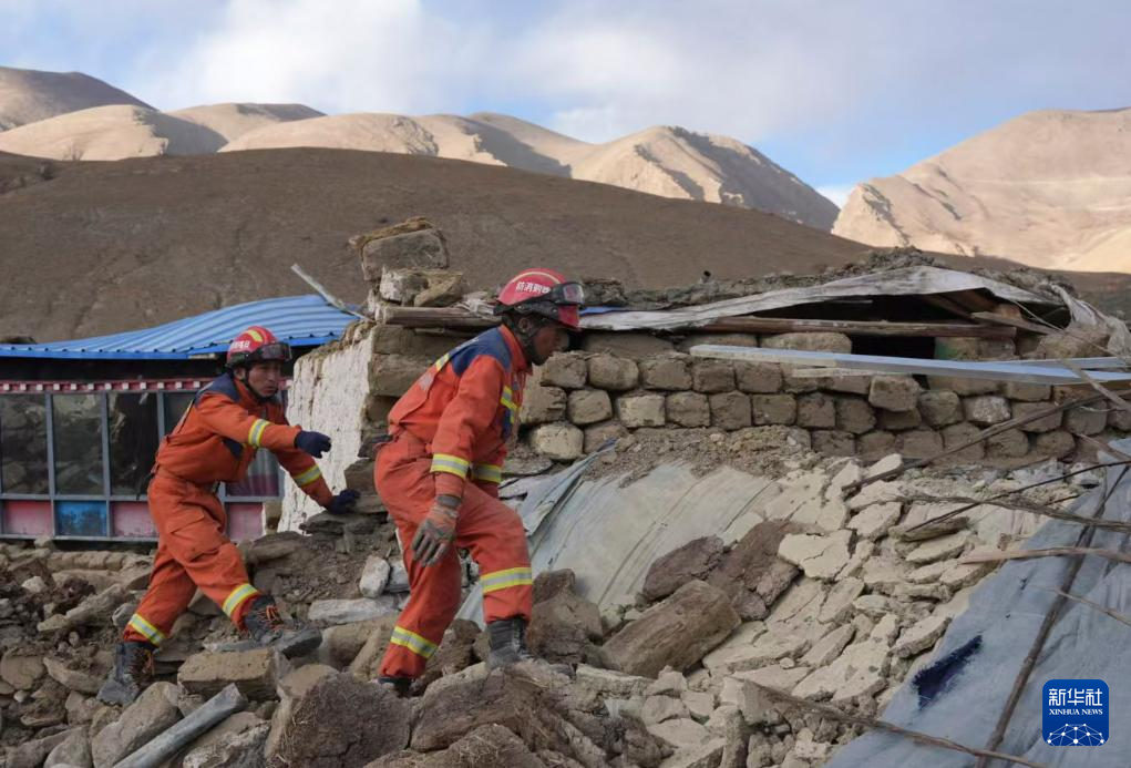 1月7日,救援人员在定日县长所乡古荣村展开救援。新华社记者 晋美多吉 摄
