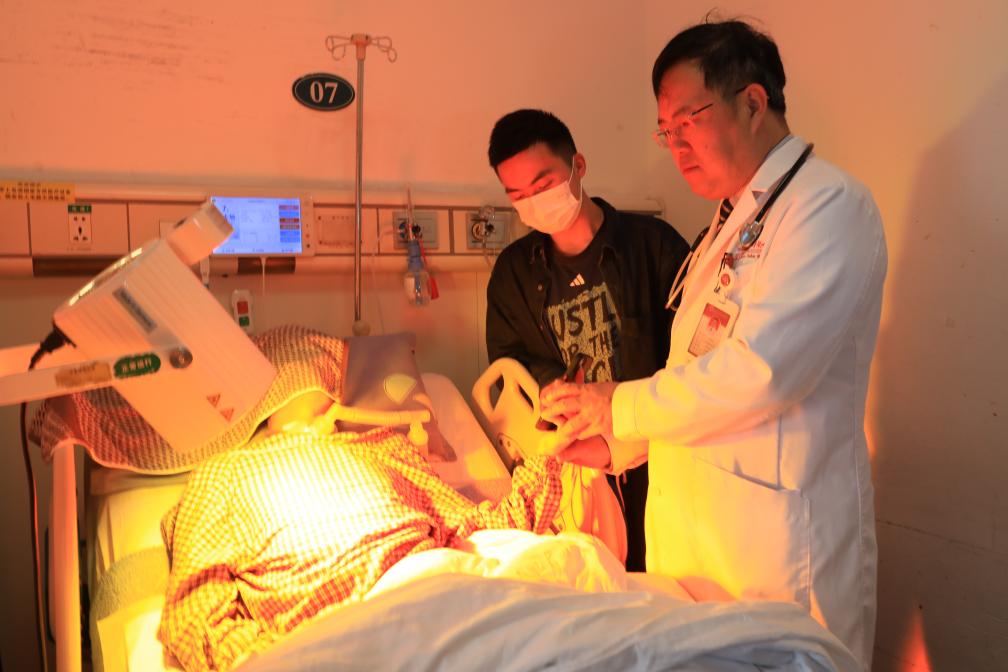 2024年6月,湘雅医院中西医结合科专家为一名颅脑损伤患者进行中西医结合治疗。(受访者供图)