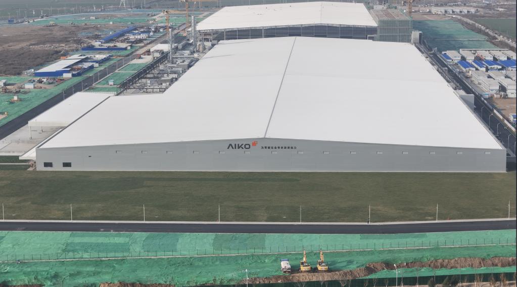 在济南新旧动能转换起步区,爱旭太阳能高效电池组件项目一期生产厂房已经封顶。(受访者供图)