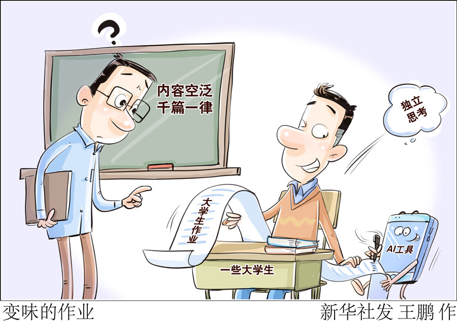 随着人工智能大模型应用普及,不仅是论文,近年来大学生作业中的“AI味儿”也变浓了:使用AI工具,仅需几分钟即可生成一份看起来符合要求的作业内容。用AI工具写作业情况如何?怎样在效率与创造力中找到平衡?“新华视点”记者进行了调查。