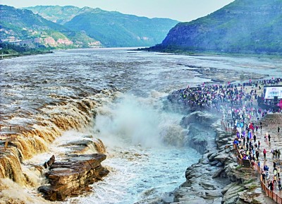 游客在山西吉县和陕西宜川县交界处的黄河壶口瀑布游览。新华社发