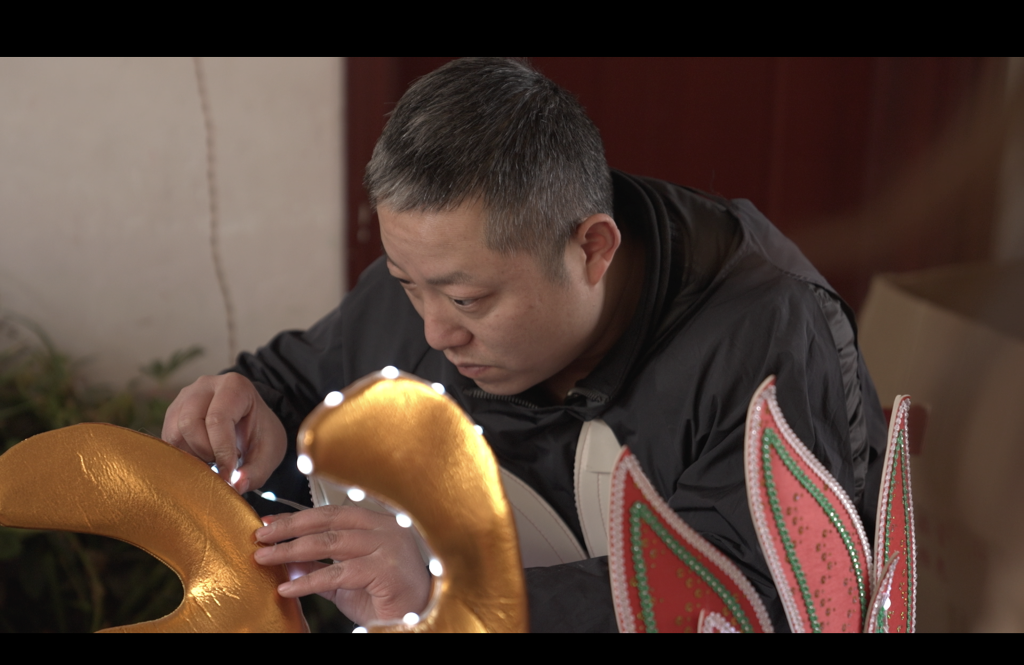 年轻人回巢,各出奇招——“90后”陈阳不断推陈出新,将新设计用于传统舞龙制作,解锁老手艺的新商机;28岁的霍浩然另辟蹊径,将现代科技元素融入传统社火道具之中,为传统的舞龙舞凤搭载上无人机技术,让传统社火道具“上了天”……