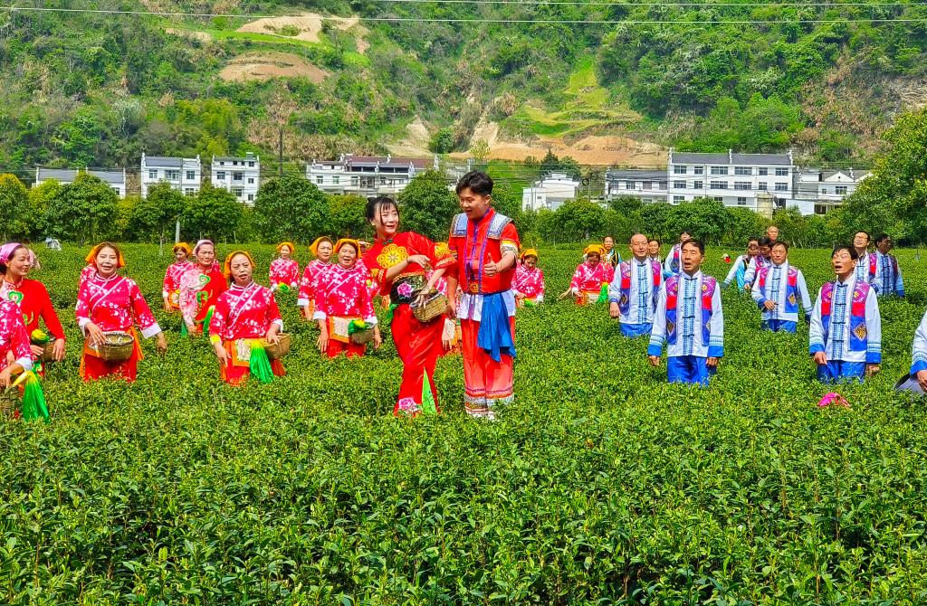 演员在平利县一处茶园进行文艺表演。(王韬 摄)