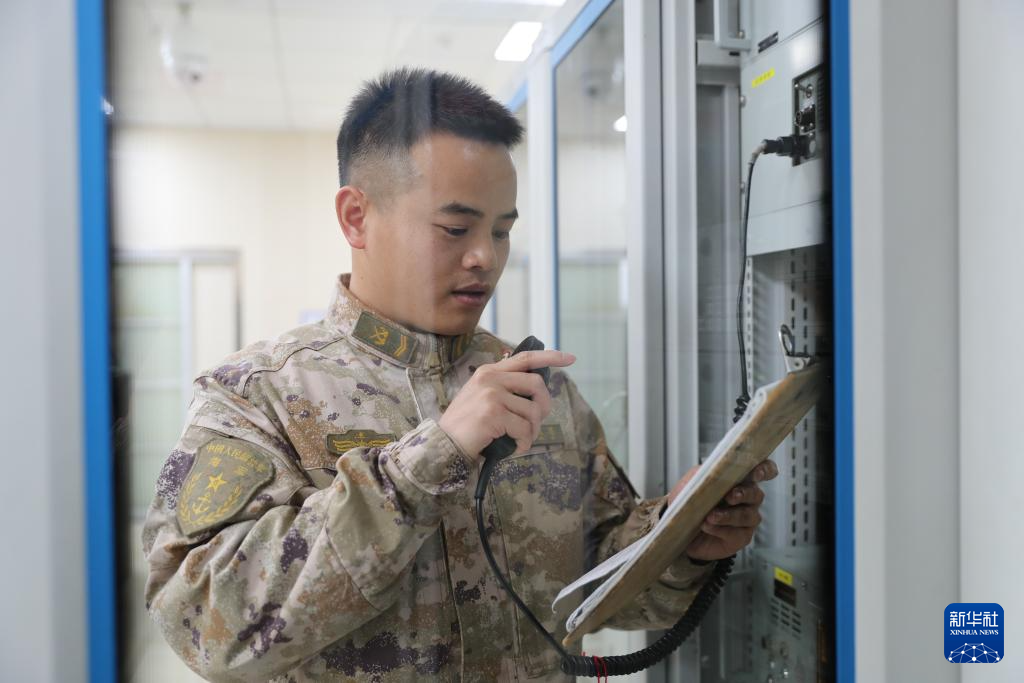1月18日,东部战区海军某高山雷达站一名战士在转报转信。新华社发(张容瑢摄)