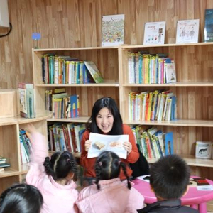 浙江嘉兴梅里有为图书馆,图书馆创始人在给孩子们讲故事。受访者供图