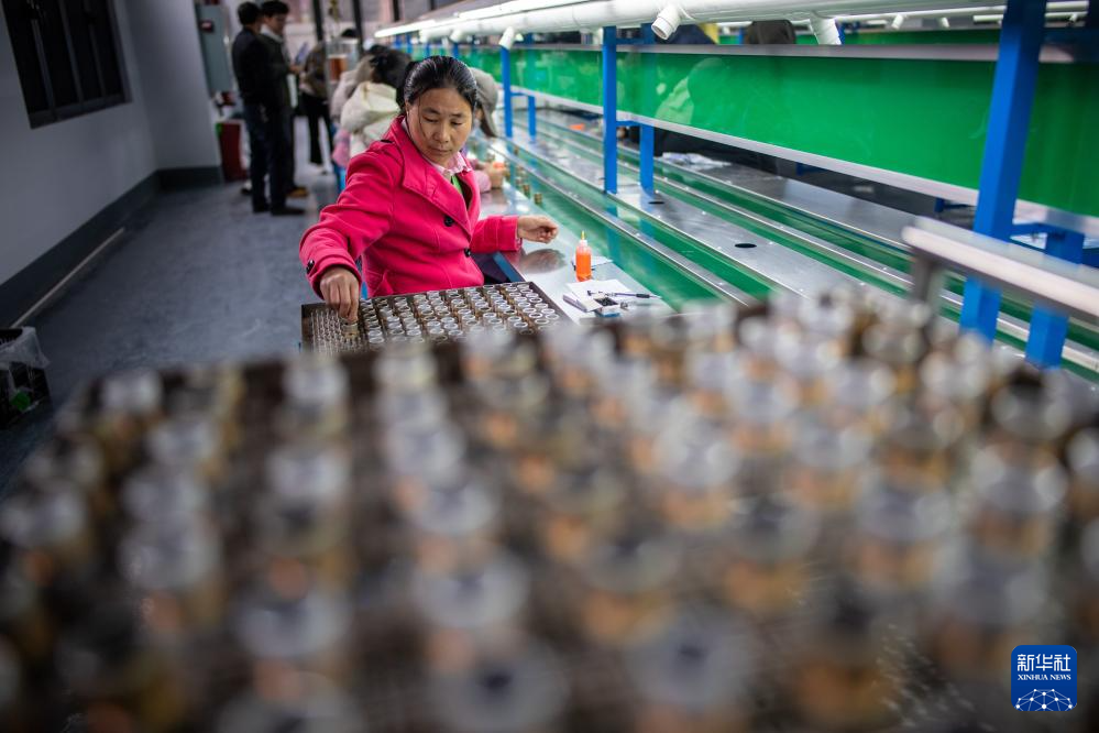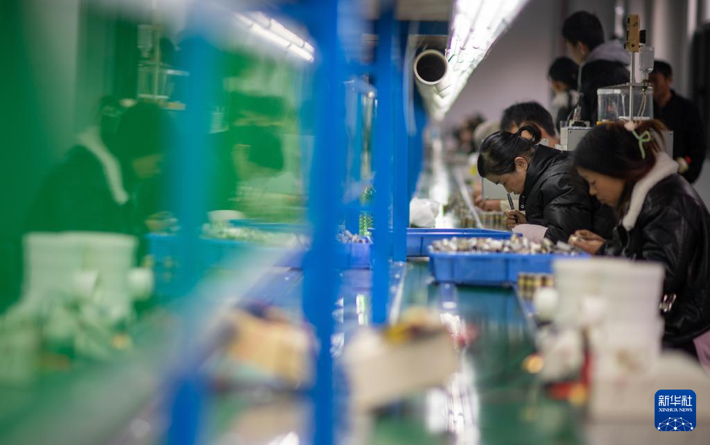 云南省曲靖市会泽县钟屏街道居民在家门口的电子厂上班(1月21日摄)。