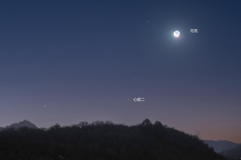 2024年12月28日在甘肃陇南拍摄的心宿二伴月。(鲁罡摄)