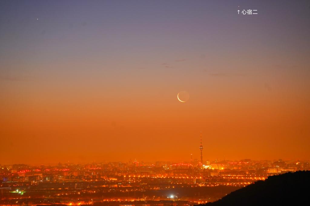 2024年12月29日在北京海淀拍摄的心宿二伴月。(王俊峰摄)