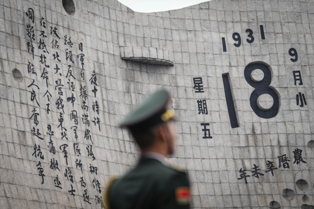 “勿忘九一八”撞钟鸣警仪式。新华社记者 潘昱龙 摄