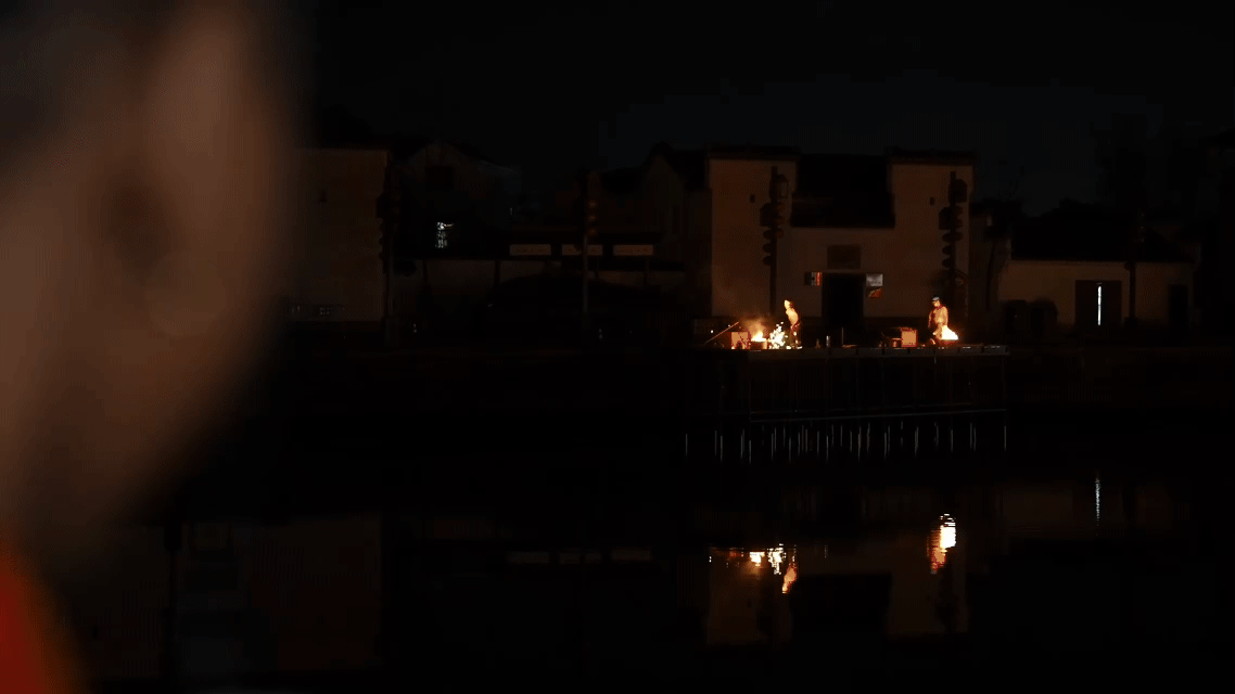 在古镇夜景中拍照打卡