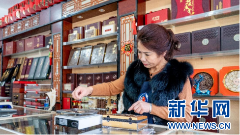 1月17日,吉林省辽源市一鹿产品店内,工作人员正在分装鹿茸片礼盒。新华社记者 唐成卓 摄