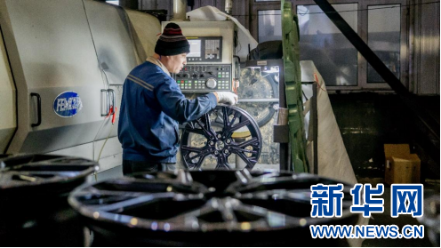 吉林万丰奥威汽轮有限公司生产车间内,工人正在加工汽车轮毂。(1月21日摄)新华社记者 唐成卓 摄