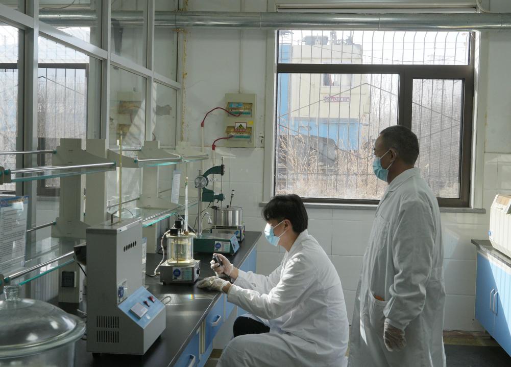 化验人员在进行滴点测定。新华社发(闫志国摄)