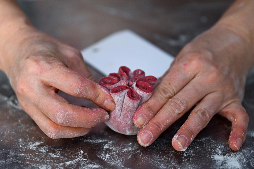 1月24日,呼和浩特市一家花馍店铺的工作人员在赶制花馍。新华社记者 李志鹏 摄