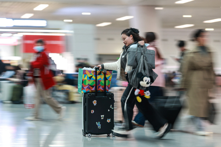 1月24日,旅客奔跑在杭州东站候车室内。新华社记者 江汉 摄