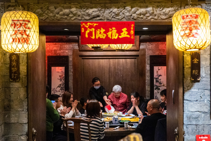 1月28日,人们在江苏省南京市一家餐馆里吃团圆饭。新华社发(张梦摄)