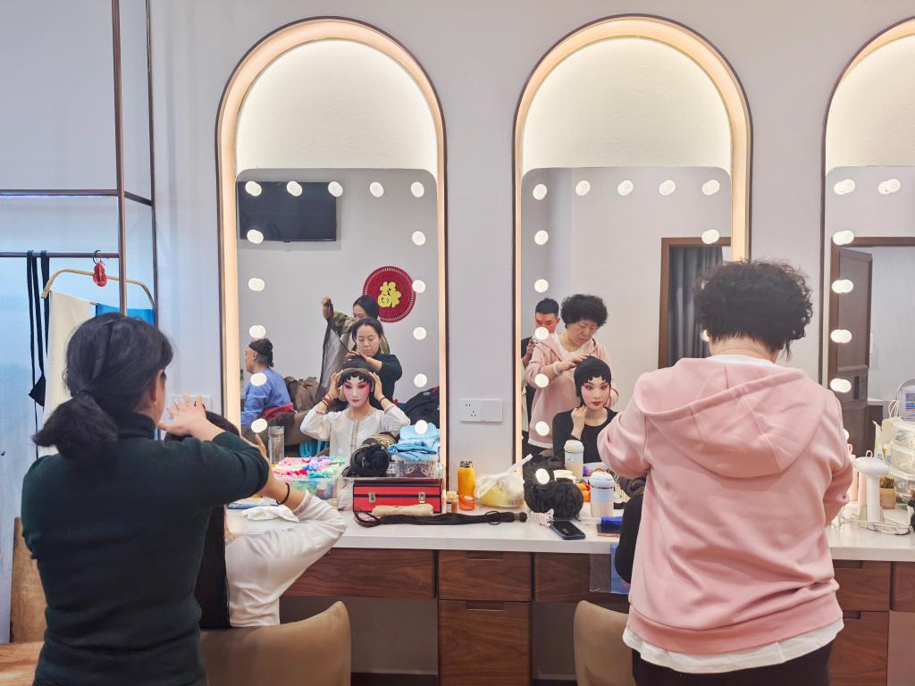 “《锁麟囊》这出戏是程派经典剧目,传递给我们‘善有善报’的价值观。从业27年,我不断揣摩角色、雕琢唱腔、打磨身段,随着年龄增长不断有新的感悟。”吕耀瑶一边化妆,一边介绍。